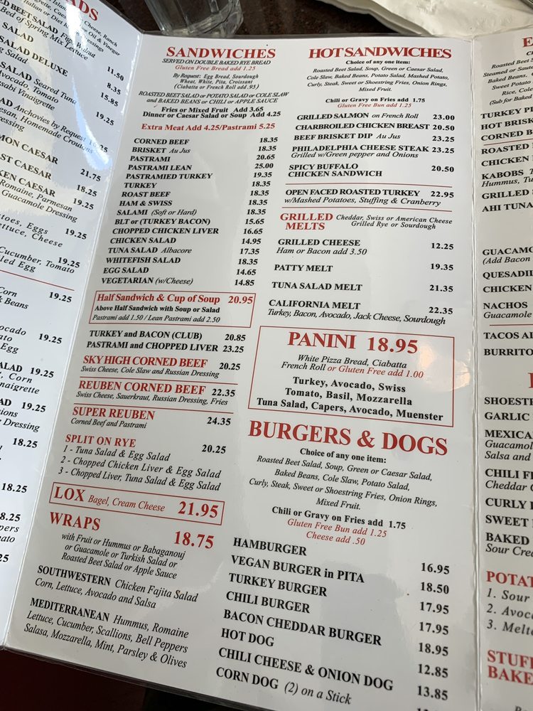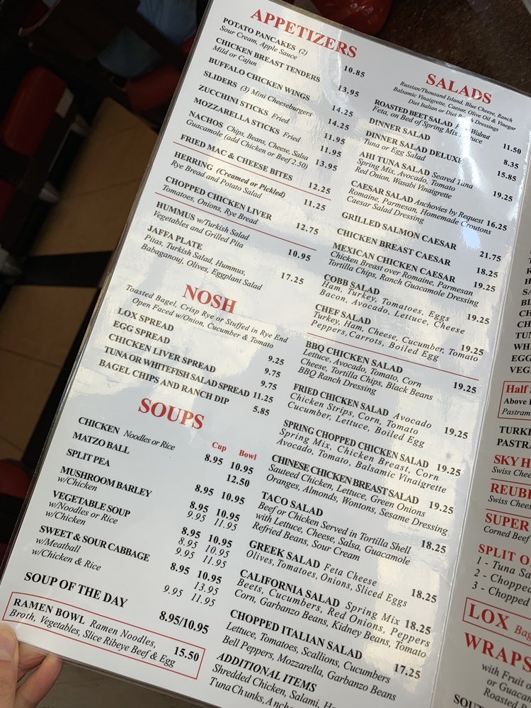 Jerry's Famous Deli, a classic American deli located in Studio City, CA, offers a wide range of appetizers and beverages. From Potato Pancakes to Nachos, the menu caters to various tastes and preferences. The selection of beverages and juices, including Fresh squeezed Orange Juice and Iced Chocolate Mocha, complements the food options perfectly. Customers have praised the Matzo Ball Soup and Corned Beef Sandwich for their flavorful and comforting qualities, making them must-try items. The attentive service and extensive menu, ranging from hotdogs to pizza, ensure that there is something for everyone. Whether you're craving a hearty deli sandwich or a decadent dessert like the chocolate fudge cake, Jerry's Famous Deli will satisfy your late-night cravings. Don't miss out on the unique offerings and cozy atmosphere of this iconic deli.